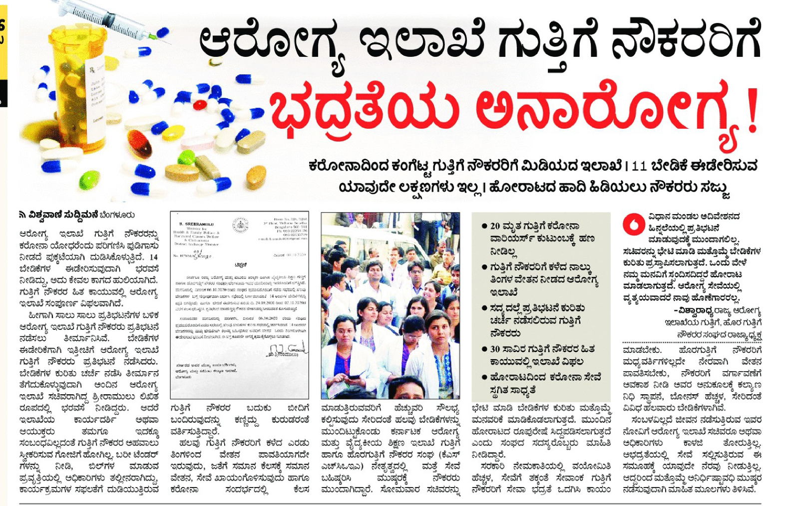 🗞️ ಆರೋಗ್ಯ ಇಲಾಖೆಯ ಗುತ್ತಿಗೆ ನೌಕರರಿಗೆ ಭದ್ರತೆಯ ಅನಾರೋಗ್ಯ